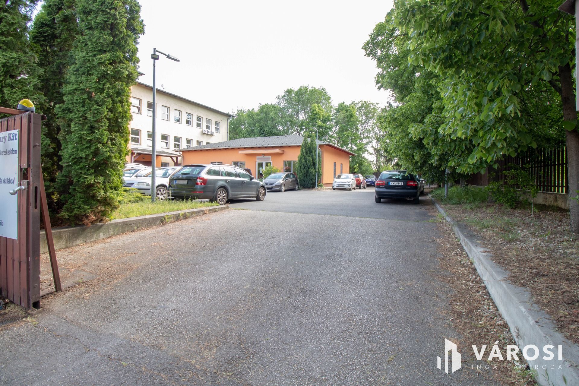 Az 1760 m2-es, körbekerített saroktelken két épület található: egy tégla építésű, 3 szintes, két emeletes irodaház, valamint egy 2014-ben ytong falazó elemekből épült 180 m2-es földszintes raktár/áruház/bemutatóterem.