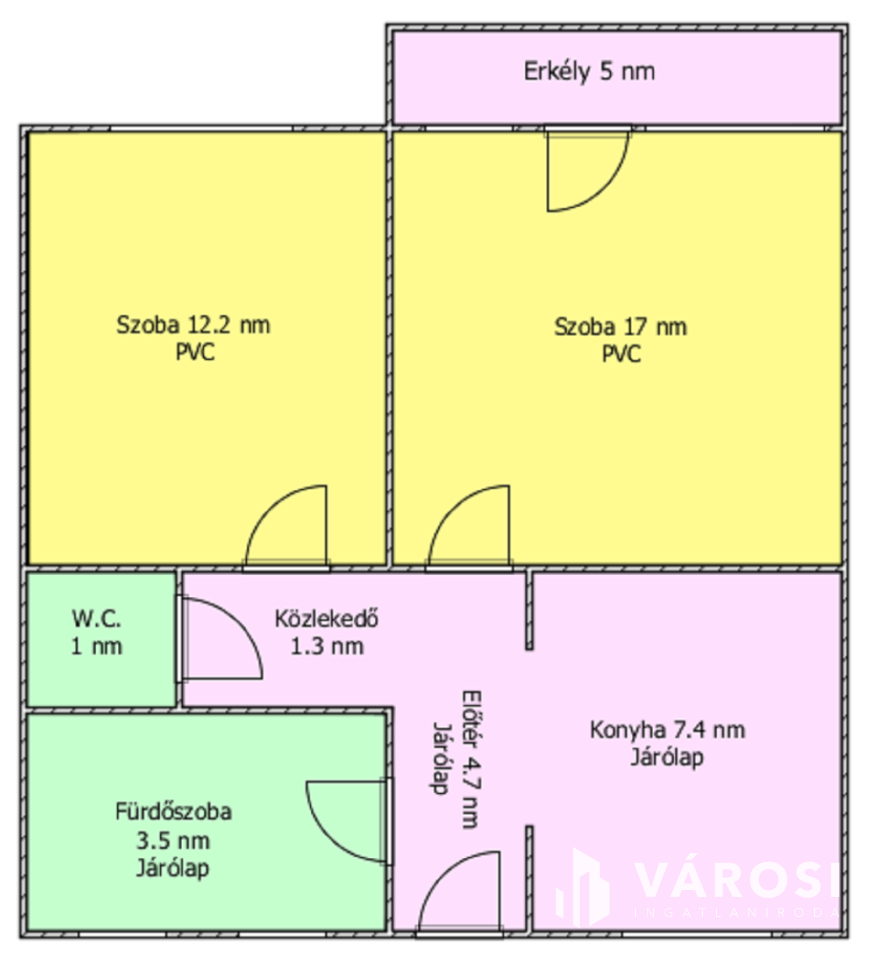 Helyiségei: 2 szoba, konyha, előszoba, közlekedő, fürdőszoba, külön nyíló W.C., erkély.