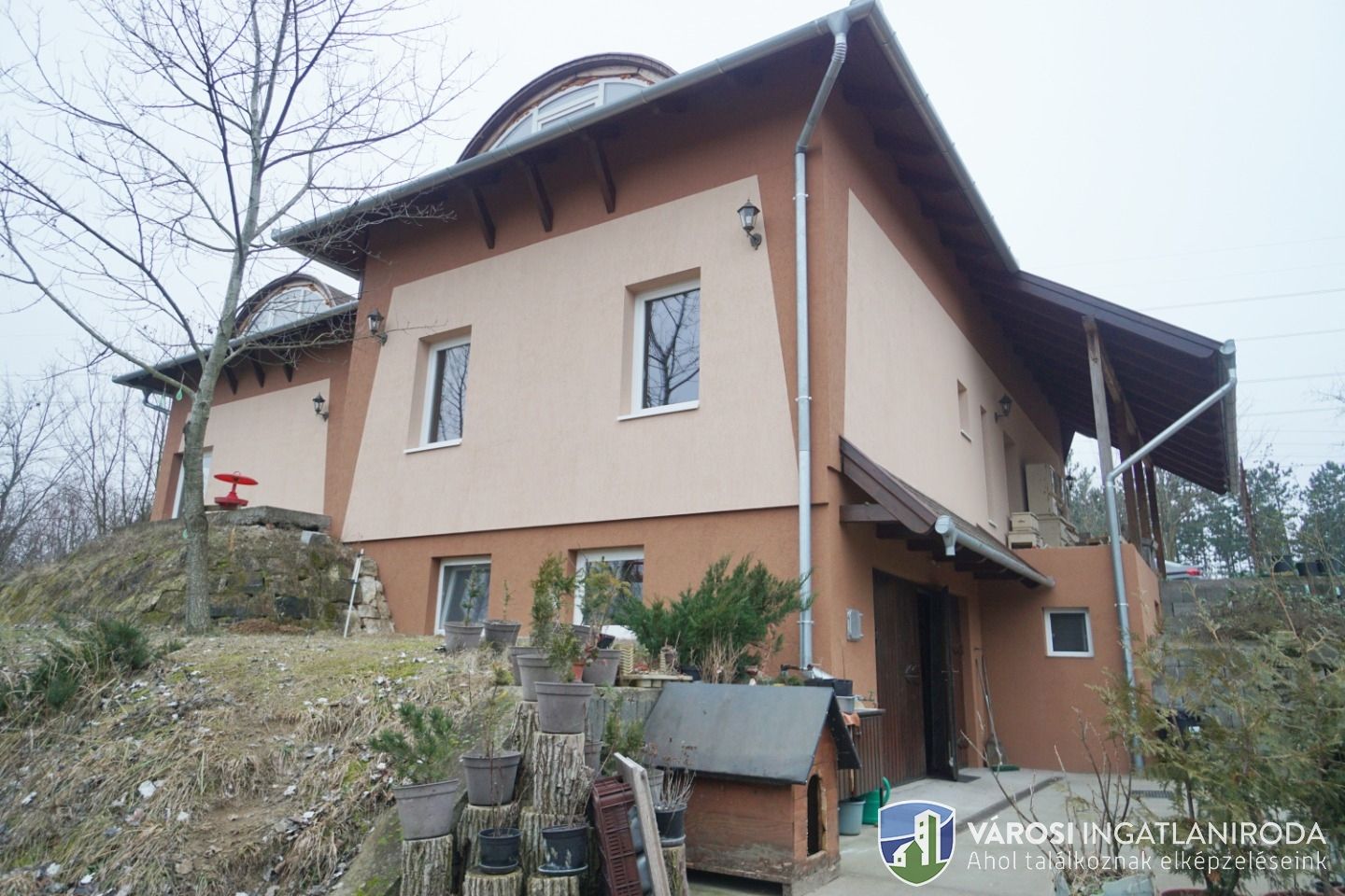 A területből 9278 nm részben lekerített építési terület, rajta 65 %-os készültségű 342 nm-es családi házzal.