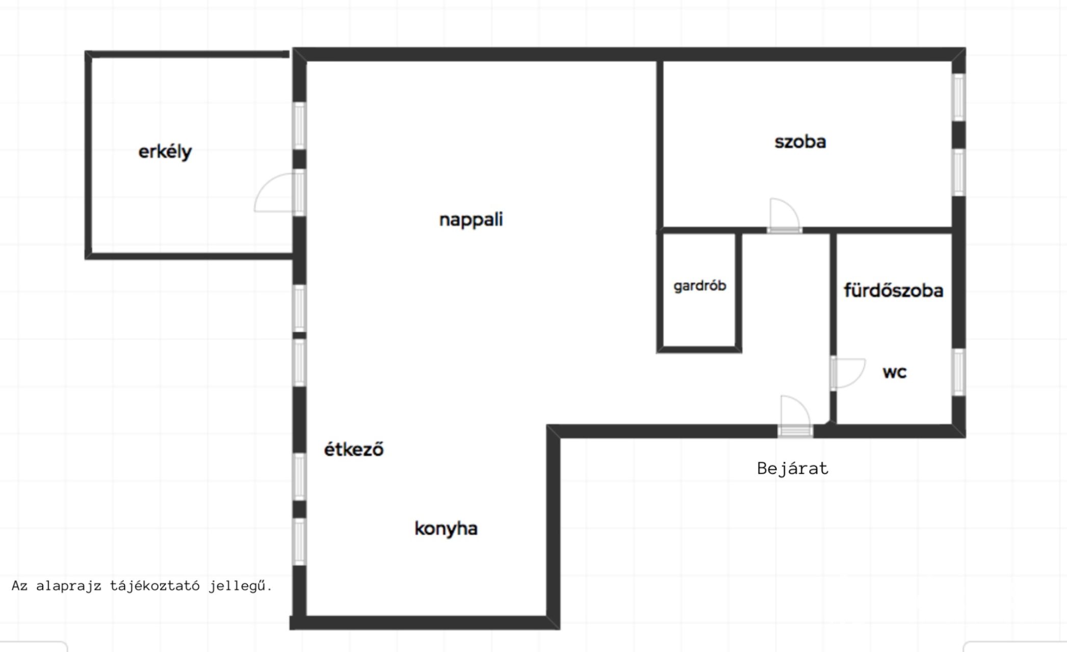 - Elrendezés: Amerikai-konyhás nappali étkezővel, hálószoba, fürdő+wc, erkély