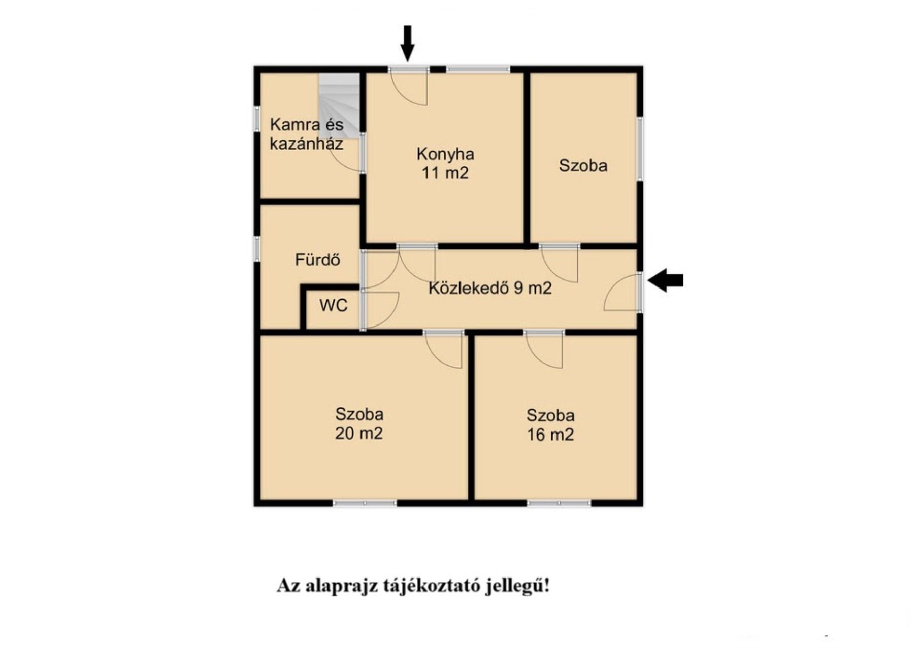 Az épület jó szerkezeti állapotú melyben megtalálunk egy előszobát, nappalit, 2 szobát, konyhát, egy kamrát.