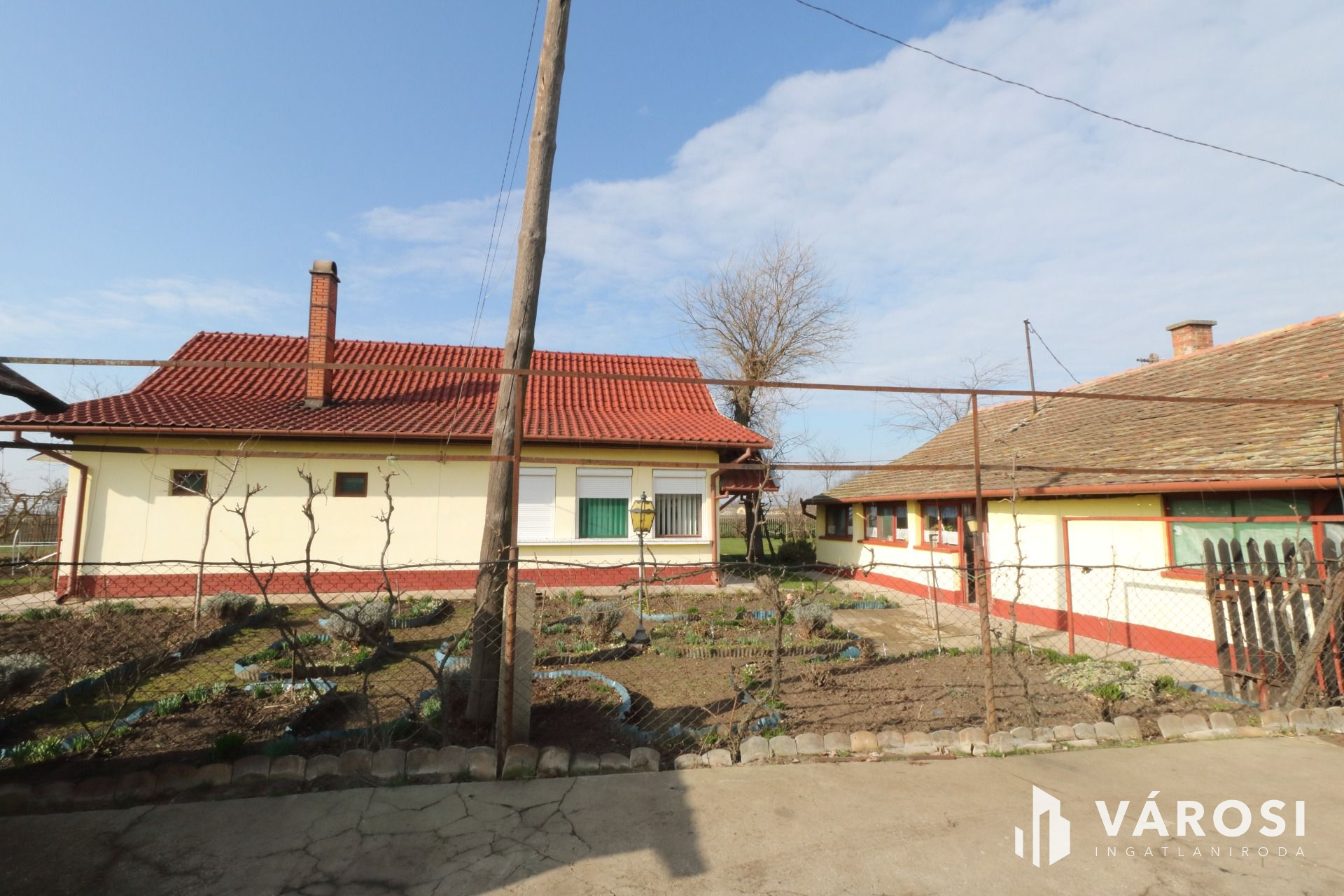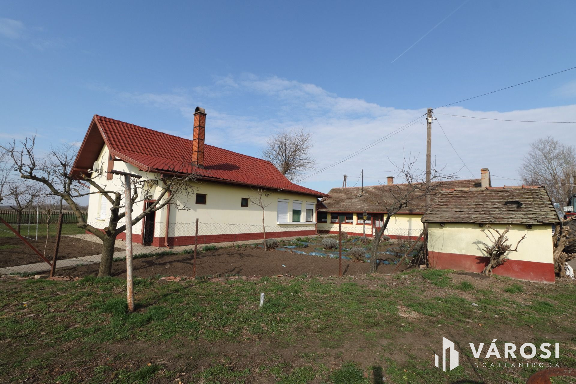 A 90 m²-es főépület felújított tetőszerkezettel, valamint részben műanyagra cserélt redőnyözött nyílászárókkal várja új tulajdonosát.