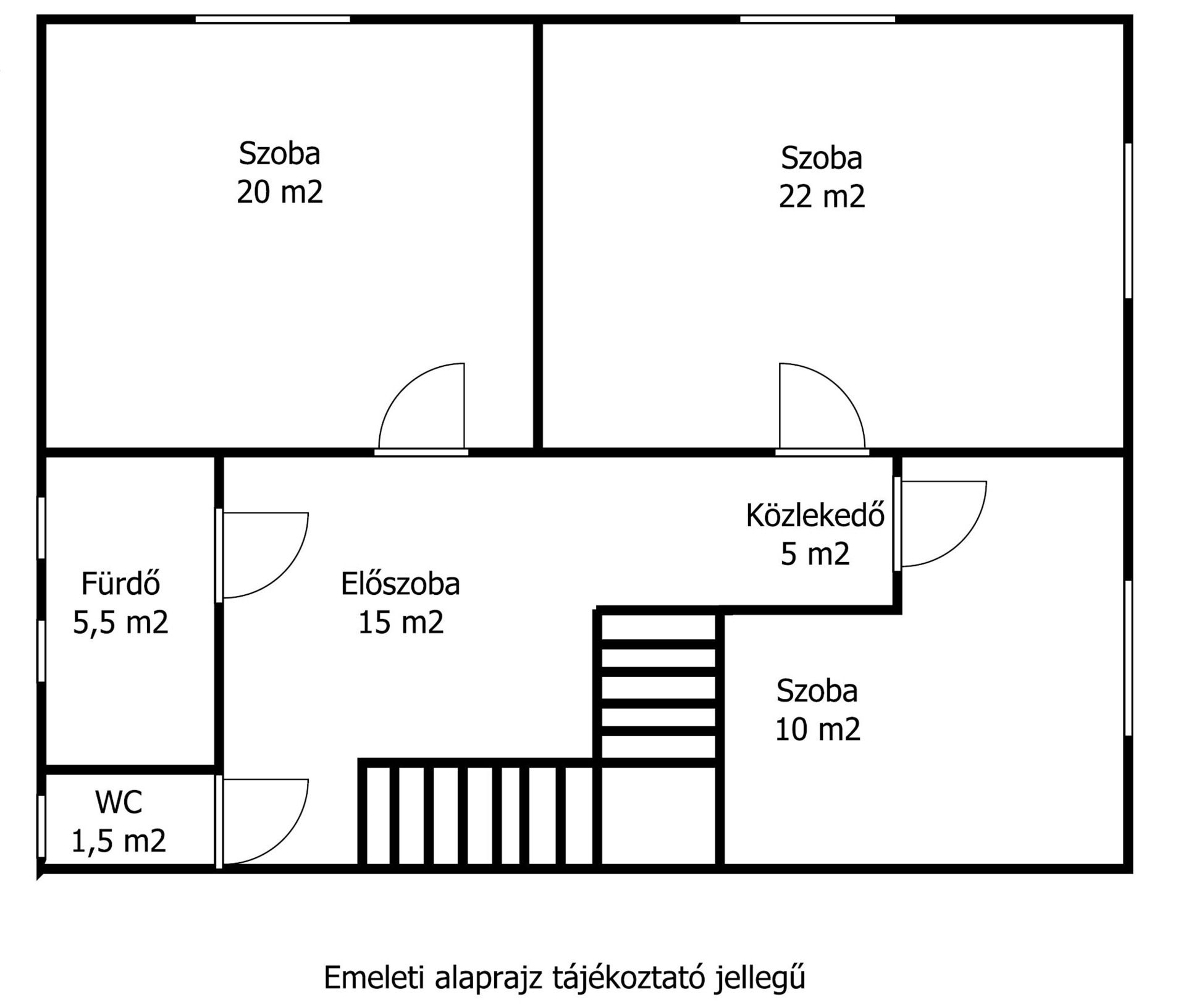 Emelet: 80 m2 előtér, 3 szoba, fürdő, külön WC,lépcsőház.