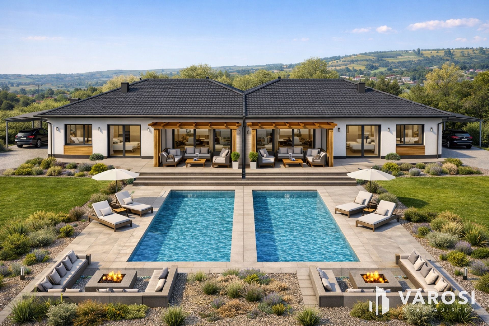 Panorámás ikerház fél Tinnyén a királyvölgy lakoparkban