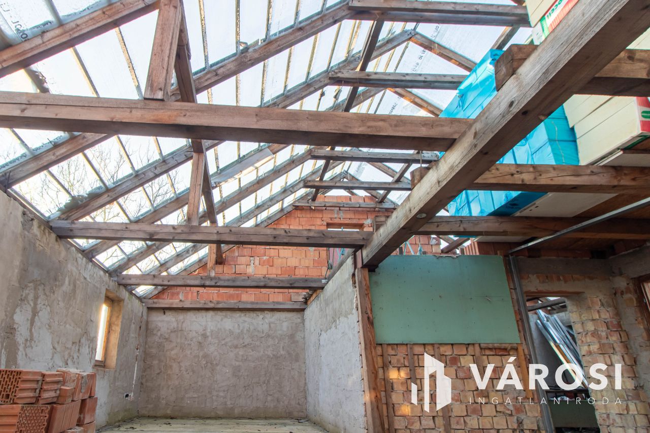 Az ingatlan építése 2010-ben kezdődött, azonban a kivitelezés félbemaradt. A jelenlegi tulajdonos újragondolta a terveket, amelyeket szívesen átad a leendő vásárlónak. A ház előkészítésre került a teljes újjáépítésre, így az új tulajdonos szabadon alakíthatja ki a végleges formáját. Statikai véleménnyel rendelkezik. Bár a jelenlegi állapota még befejezetlen, megfelelő szakértelemmel és némi kreativitással egy modern, kényelmes otthon varázsolható belőle.