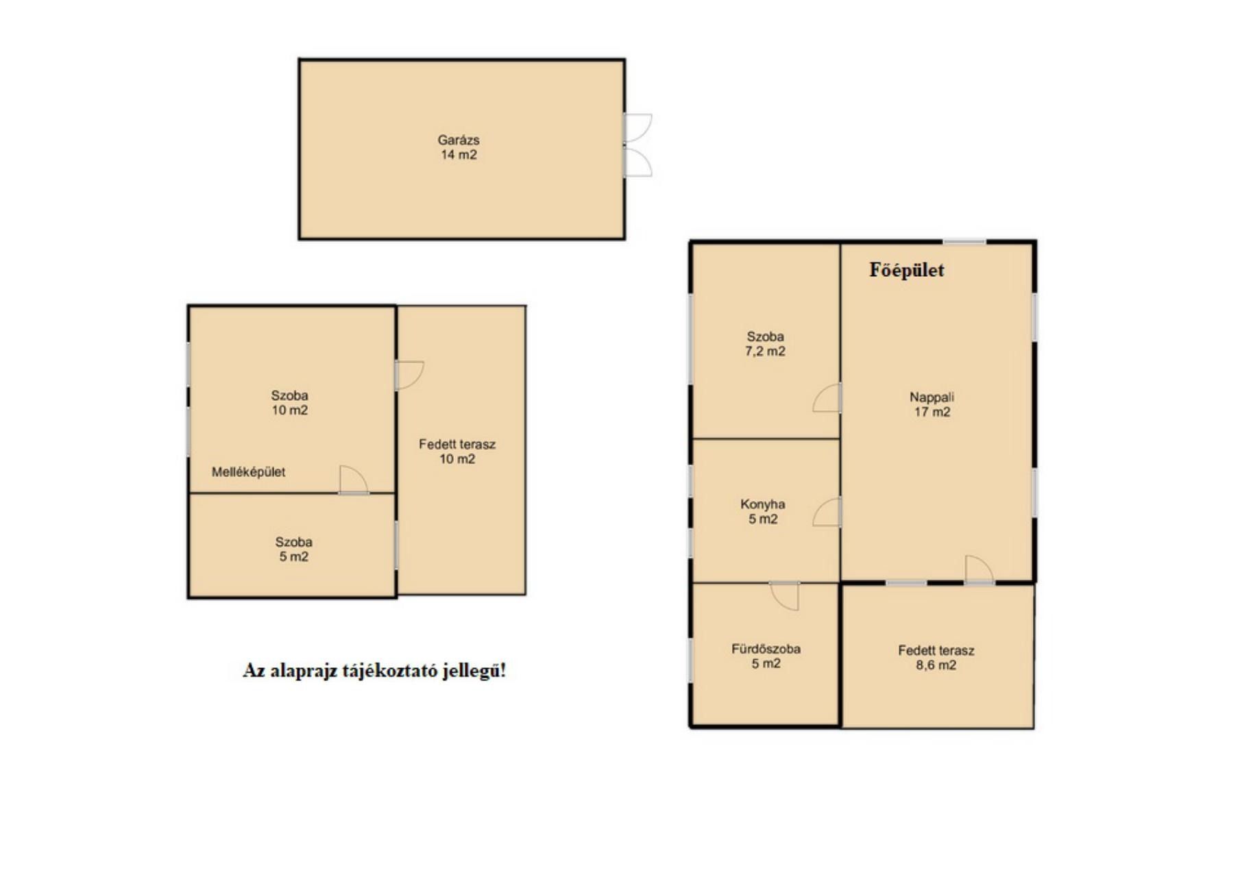 A garázs (szintén könnyű szerkezetes): 14 m2.